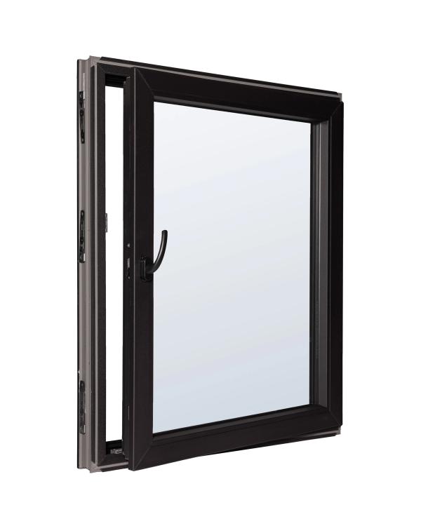 Vinduet kan leveres med gjennomfargede profiler i sort eller antrasitt for et moderne og helhetlig design, hvit som standard.